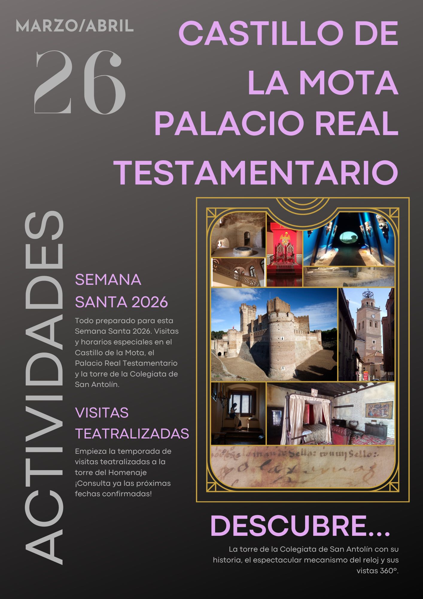 Ciertos fines de semana la torre del Castillo de la Mota vuelve a la vida de la mano de Don Rodrigo y Doña Beatriz en la visita teatralizada “Un alto en el camino”. ¡Busca la fecha que mejor te venga y únete a este recorrido especial!